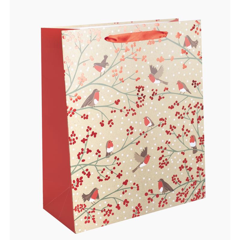 • PAPIEROVÉ TAŠKY MATNÉ, VTÁKY NA VETVE, ČERVENÉ S JASNE ČERVENOU POTLAČOU