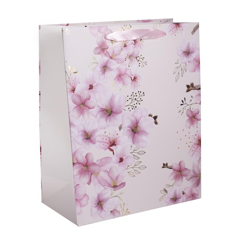 • PAPIEROVÉ TAŠKY S MATNOU, LESKLOU POTLAČOU RUŽOVÉHO BROSKYŇOVÉHO KVETU