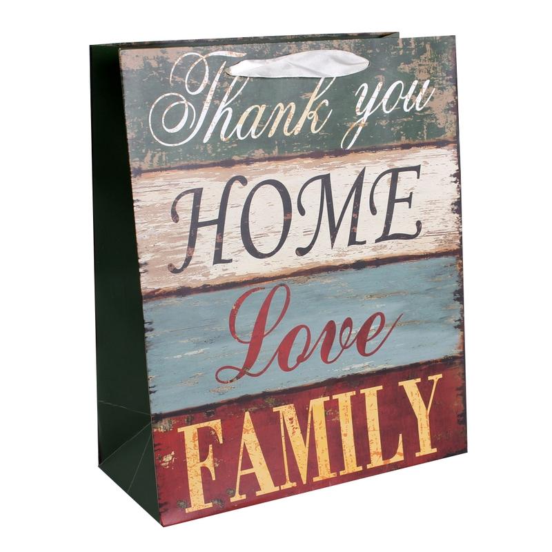 • PAPIEROVÉ TAŠKY S MATNOU, STUŽKOVOU CHLOPŇOU S NÁPISOM "THANK YOU, HOME, LOVE, FAMILY"