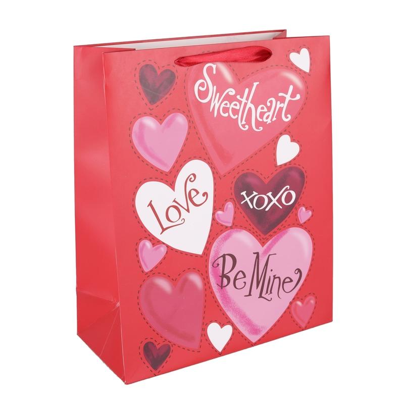 PAPIEROVÉ TAŠKY S MATNOU, STUŽKOVOU CHLOPŇOU, SRDIEČKA NA ČERVENOM POZADÍ, NÁPISY LOVE/SWEETHEART/INÉ