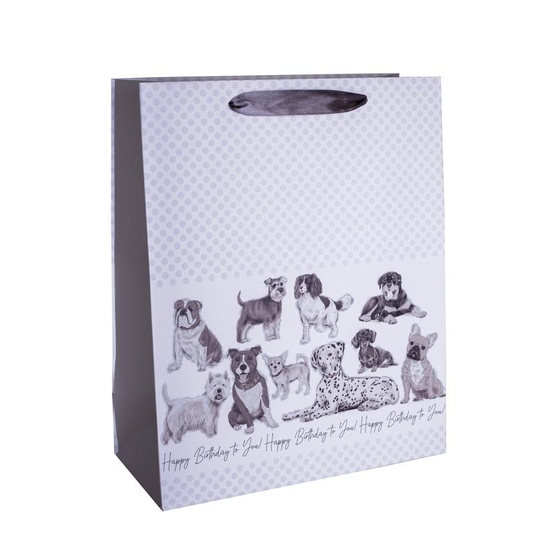 • PAPIEROVÉ TAŠKY S MATNÝMI STUŽKOVÝMI UŠAMI, KRESLENÉ PSY