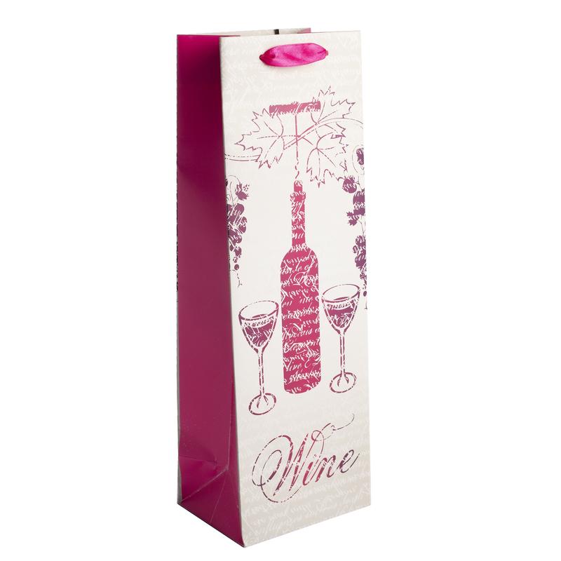 PAPIEROVÉ TAŠKY S VÍNOM, MATNÉ, S NÁPISOM "WINE", BIELO-RUŽOVÁ FĽAŠA VÍNA, POHÁRE