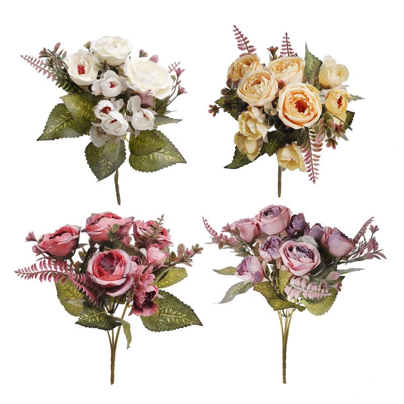 • KYTICA UMELÝCH KVETOV RUŽÍ S PAPRADÍM, 9 HLÁV KVETOV