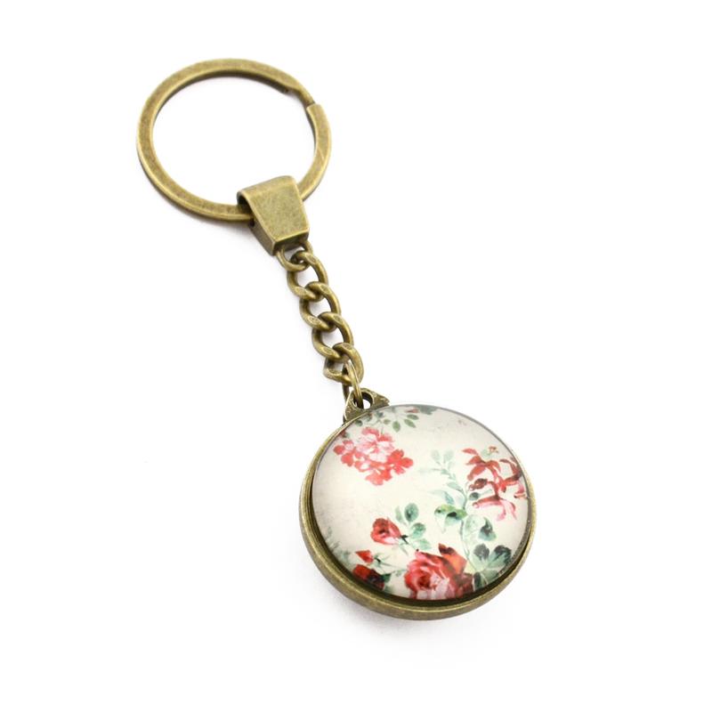 PRÍVESOK NA KĽÚČE Z KOVU A SKLA, V TVARE DISKU, VZOR RUŽE