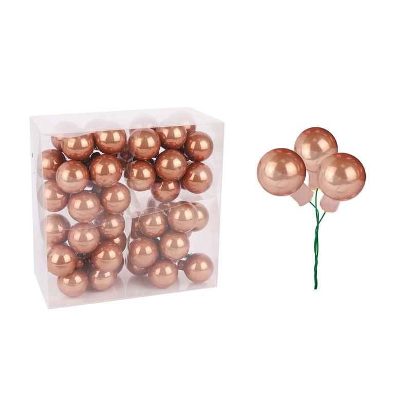 SADA SKLENENÝCH VIANOČNÝCH OZDÔB V PVC KRABICI, 48 KUSOV, KARAMELOVÁ